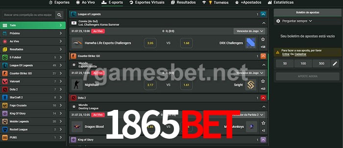 O 1865Bet oferece uma grande seleção de opções de apostas em e-sports com probabilidades competitivas